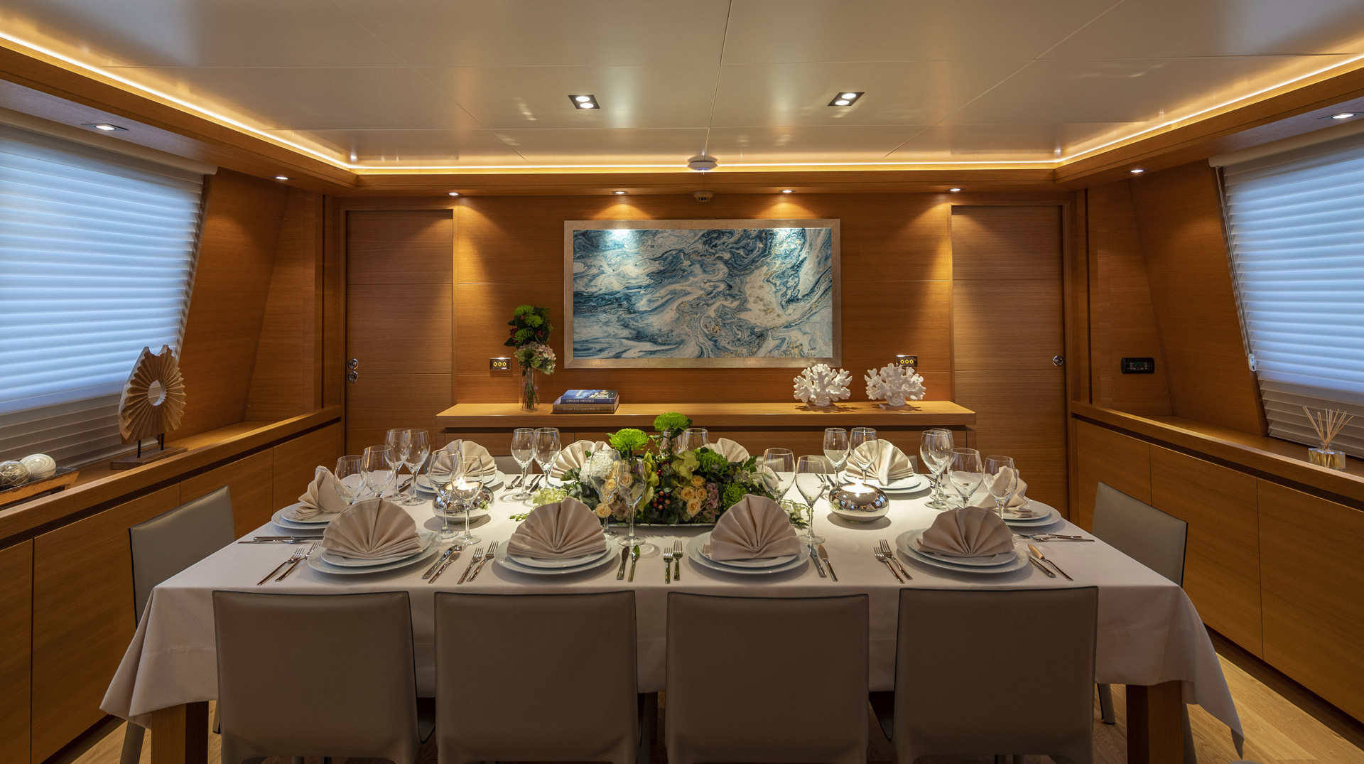 NOTABLE FEATURES OF CELIA: ~65" home cinema on the sundeck ~Kaleidescape entertainment system ~RINA classification ~Top speed of 28 knots ~Gym equipment ~Air conditioning ~Wi-Fi