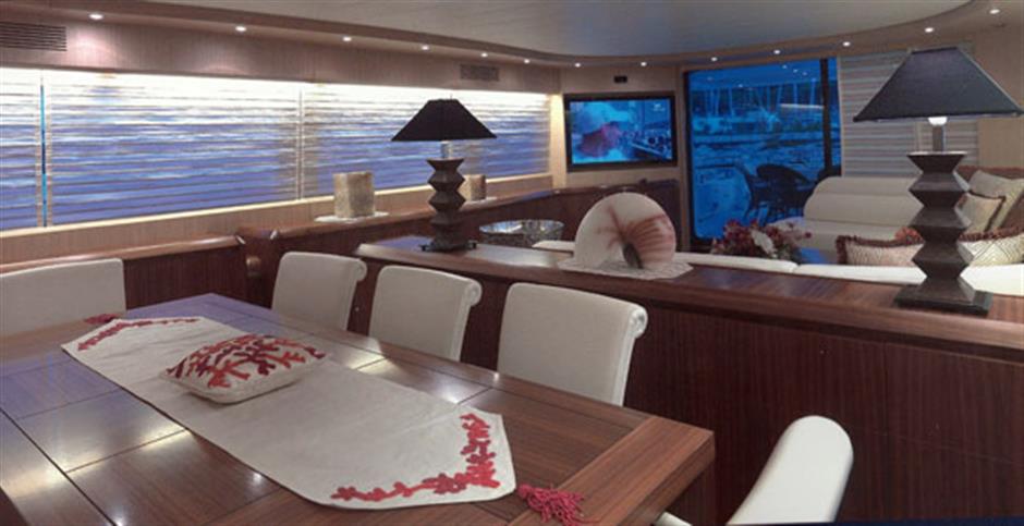 MY LIFE has a wide spacious saloon with natural oak and walnut finishings, her contrasting colours with light coloured sofas and dark wood wooden floors are very inviting and give a luxurious feel.