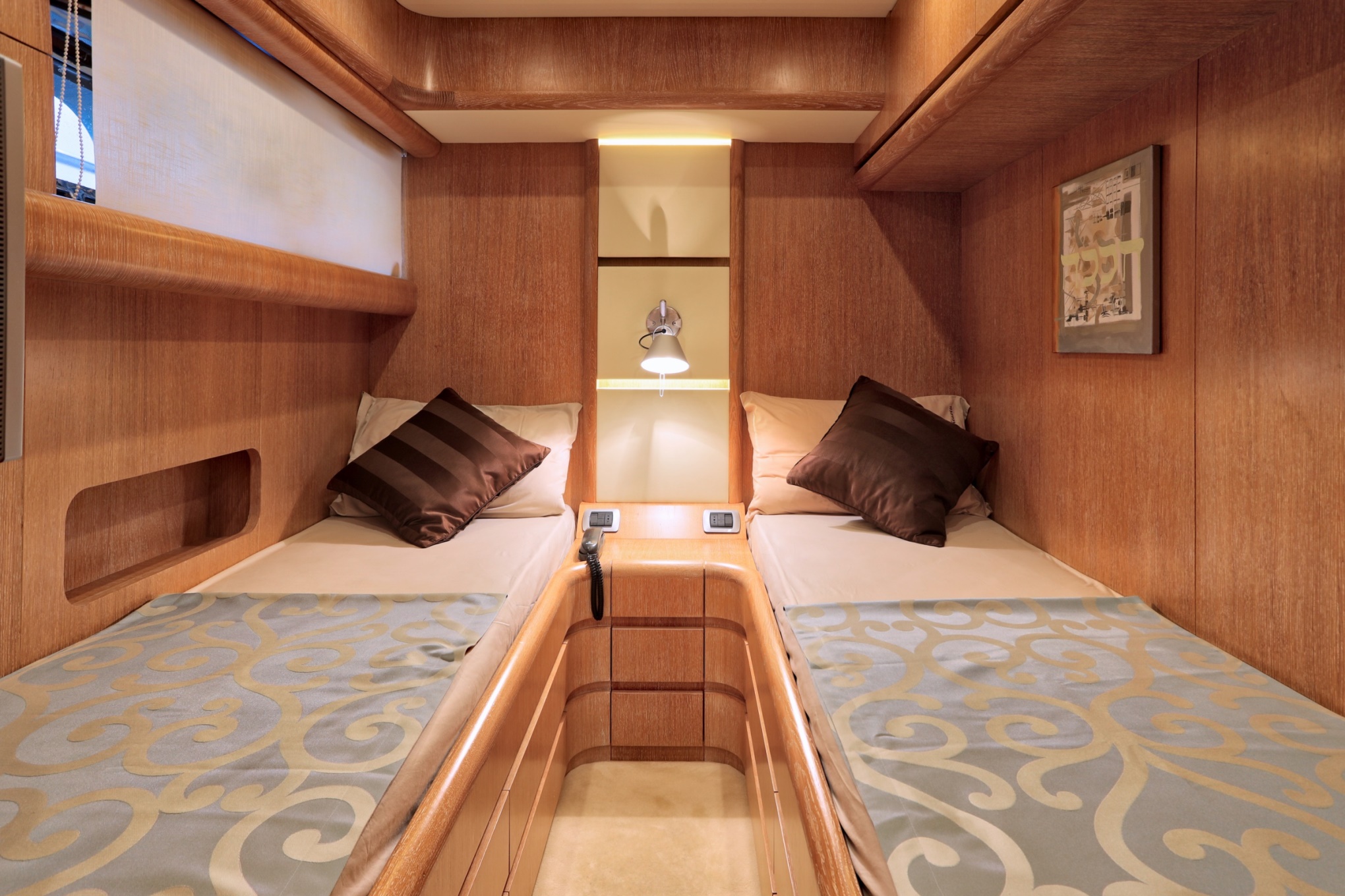 The yacht's interior is light and airy, from the main social gathering areas to the private cabins.