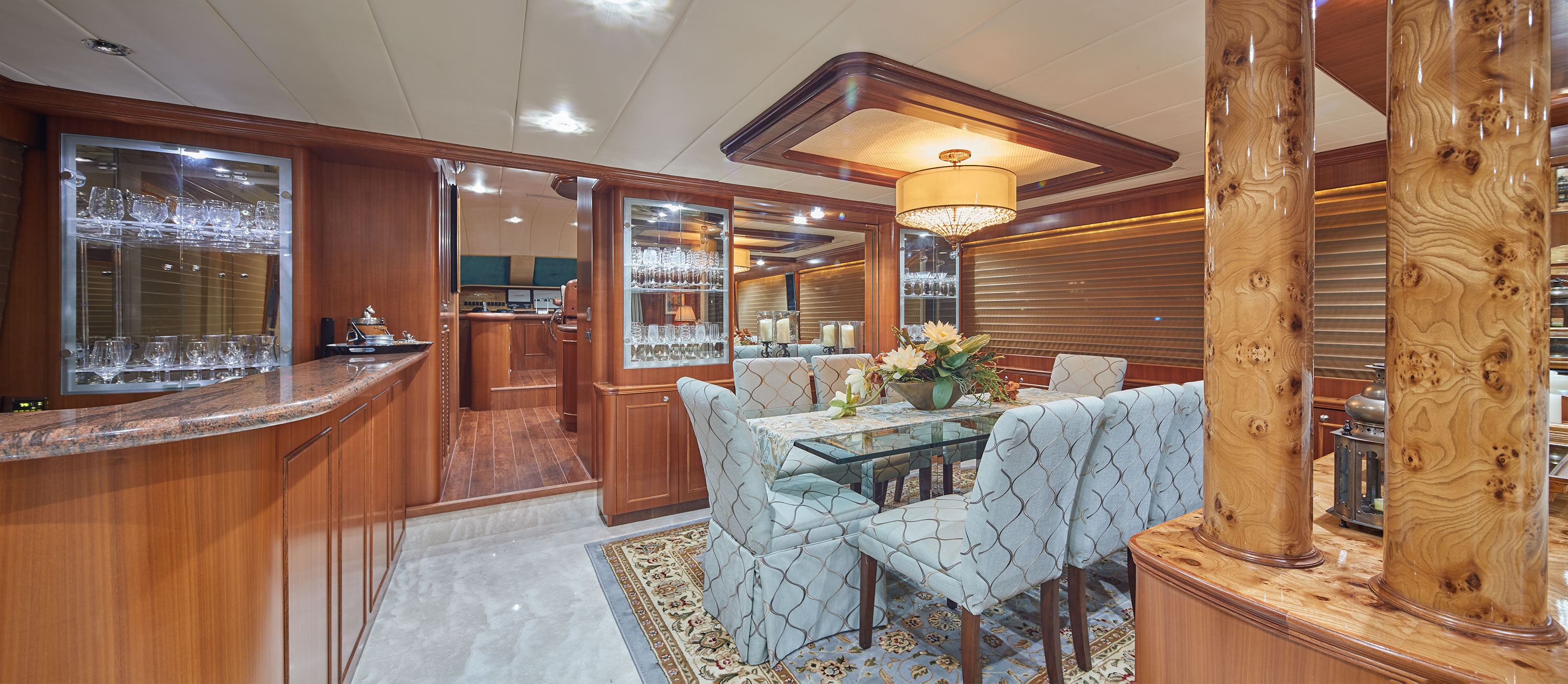 The accommodation sleeps a maximum of six guests over three en-suite cabins, with a crew of three for excellent service.