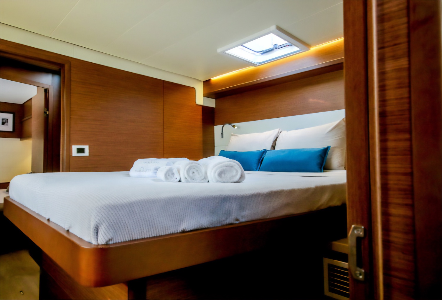 Her spacious layout and modern interior design were created by Nauta Design, accommodating up to 10 charter guests in 5 cabins. Guests are looked after by a professional crew of 3.