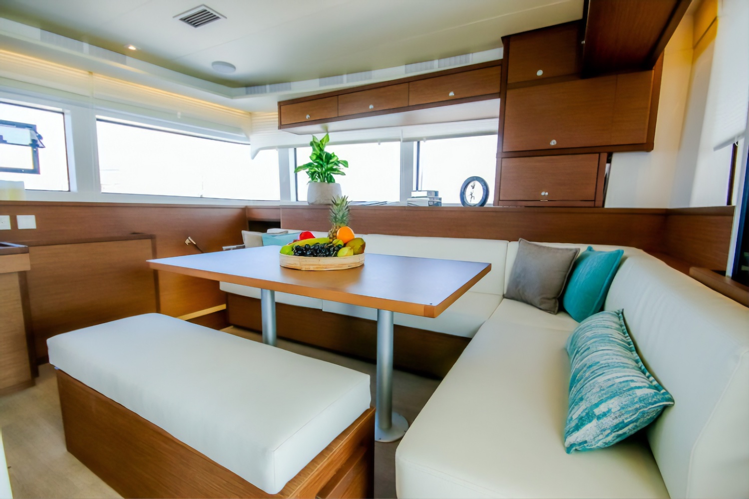 Luxury catamaran yacht ELVIRA 52 (ex VALIUM 52) is a lovely Lagoon sailing catamaran, measuring 15.85m (52’) and launched in 2019. Her spacious layout and modern interior design were created by Nauta Design, accommodating up to 10 charter guests in 5 cabins. Guests are looked after by a professional crew of 3.
