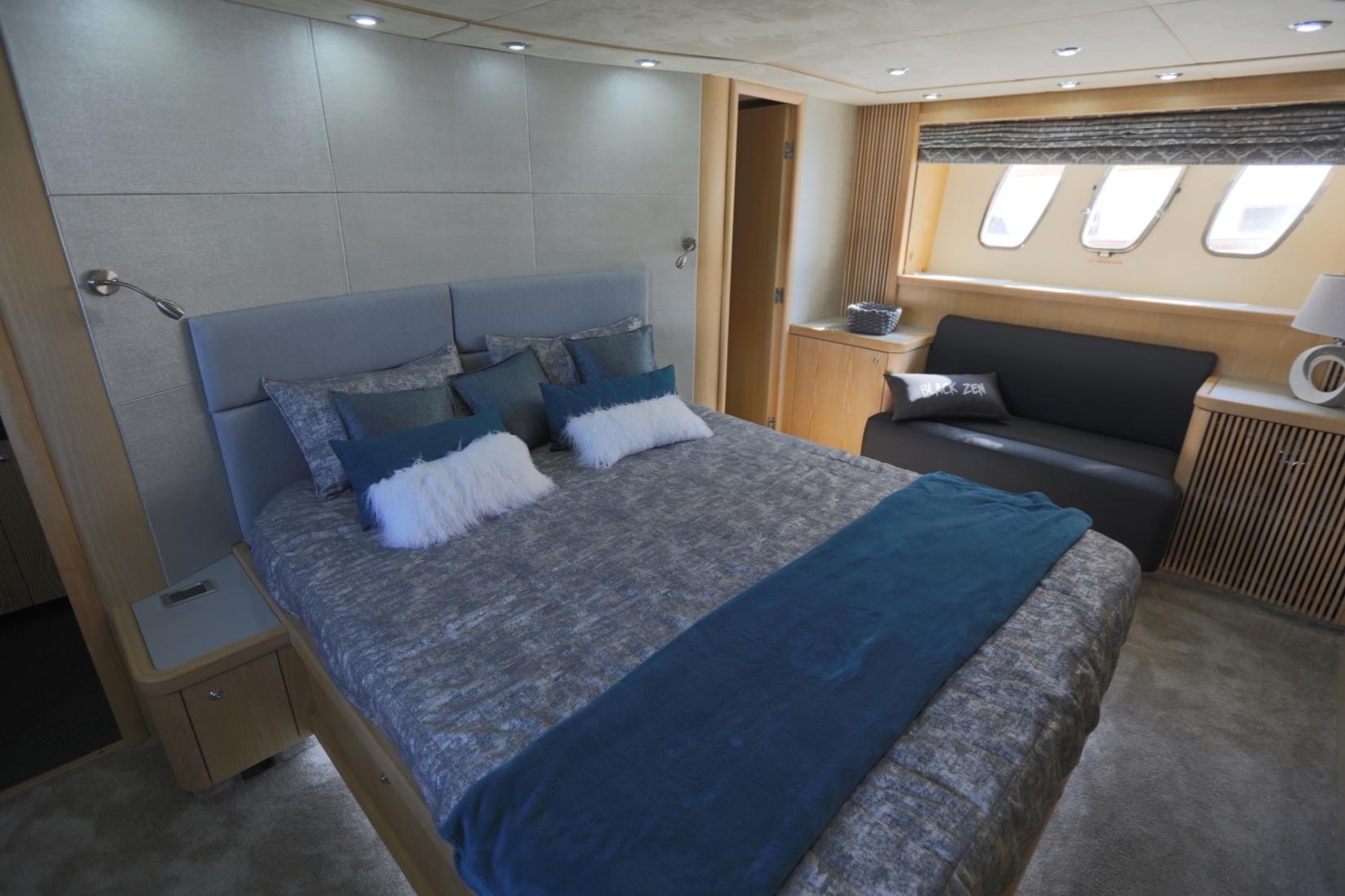 BLACK ZEN hs 4 cabins, comprising a master stateroom, VIP suite, twin cabin and bunk cabin, accommodating up to 8 charter guests. Tenders and Toys: