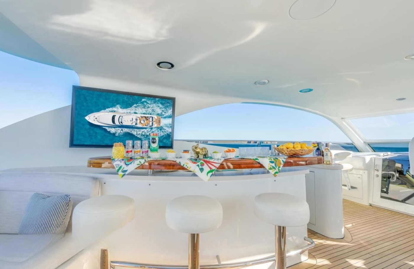 With the salon adjacent, this area is ideal for socializing and entertaining. On her foredeck, charter guests can enjoy sunning while at anchor or underway.