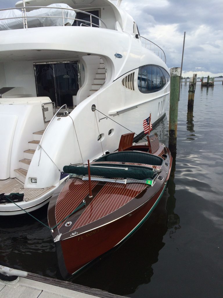 A starboard staircase connects to the flybridge aft, where the tender is stored along with the stern and a circular table and curving sofa provides a second place for guests to lounge outside or gathers as a large group for an ...