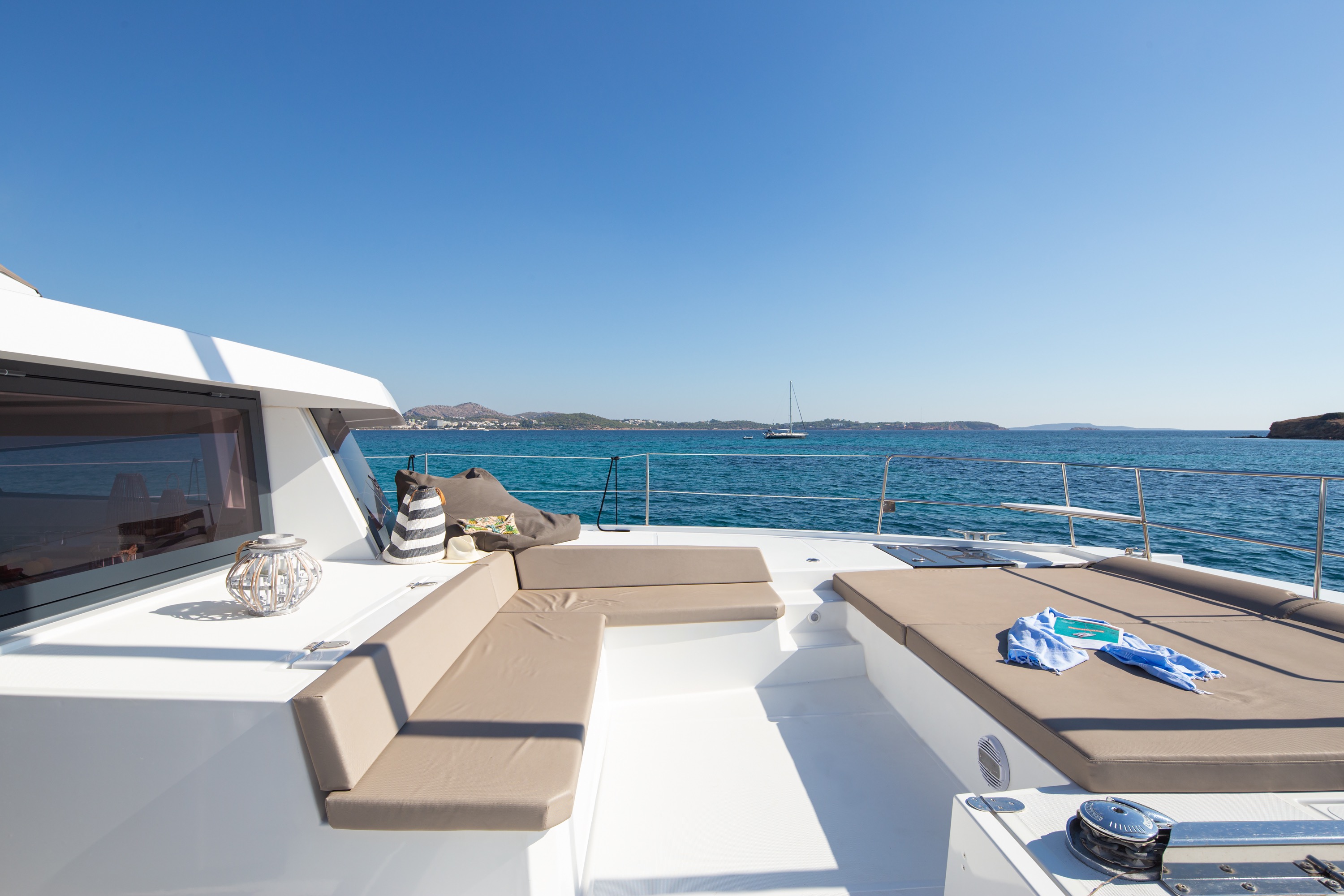 NOTABLE FEATURES OF LICENSE TO CHILL: ~Broad foredeck sunbathing area ~Abundance of indoor lounge and dining spaces ~Spacious guest cabins ~Great selection of water toys ~Shallow draft of 1.5m/4.10ft for close beach access ~Air ...