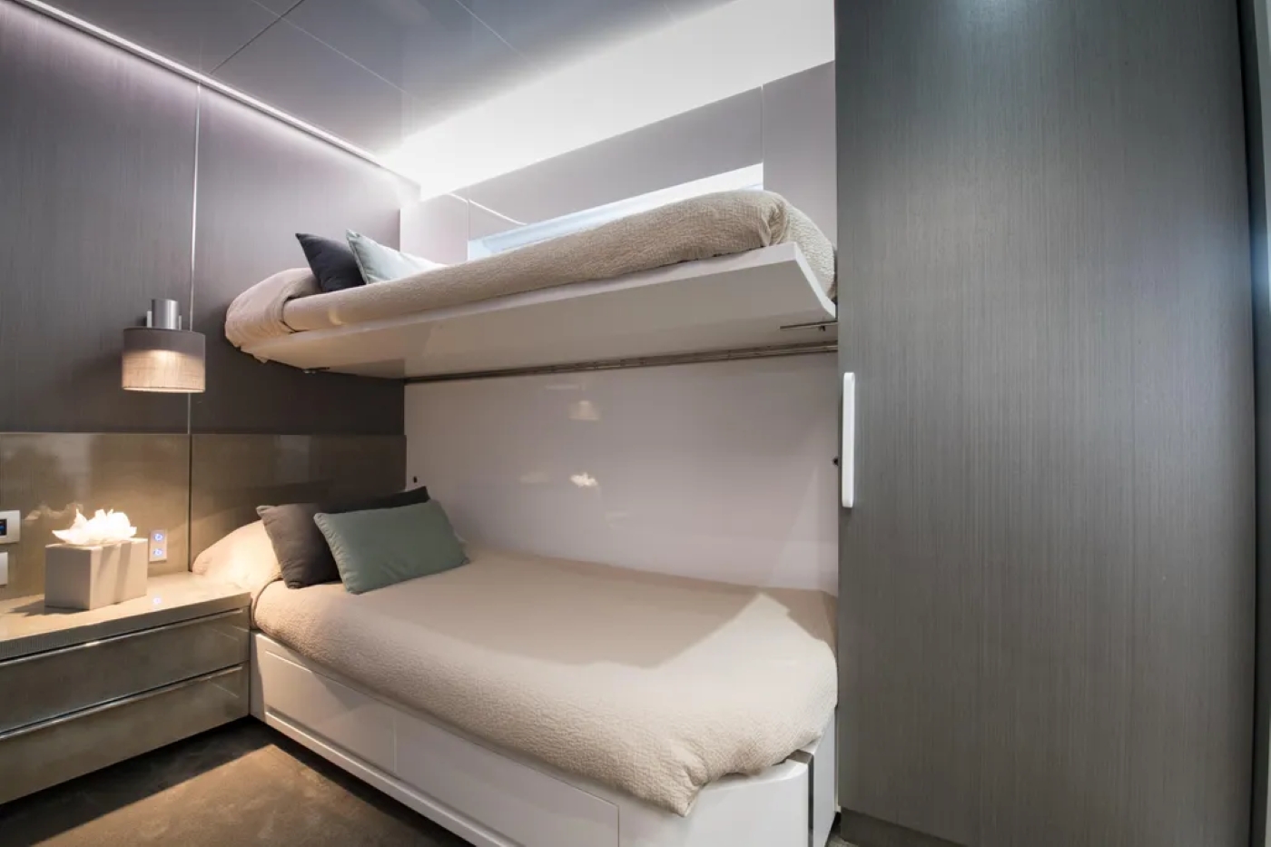 With contemporary styling and spacious deck areas, MARCELLO can accommodate up to eight charter guests in four cabins overnight, with a professional crew of three ensuring everyone has a relaxing time on board.