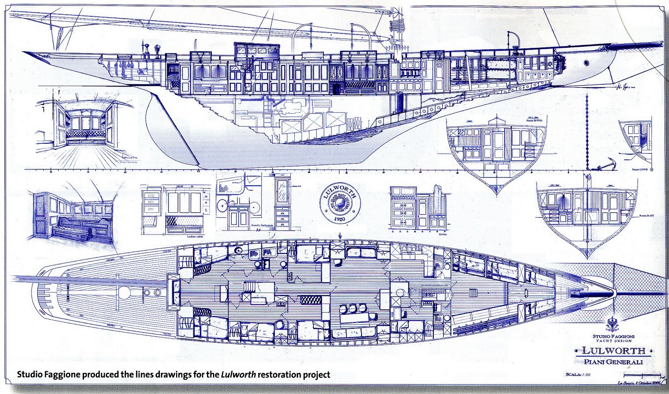 The yard was established to rebuild the 1939 Feadship IDUNA and its success lead to the new project with LULWORTH. The works started in July 2001; a complete restoration to the original state, using traditional methods. The yacht is a composite of wood and steel.