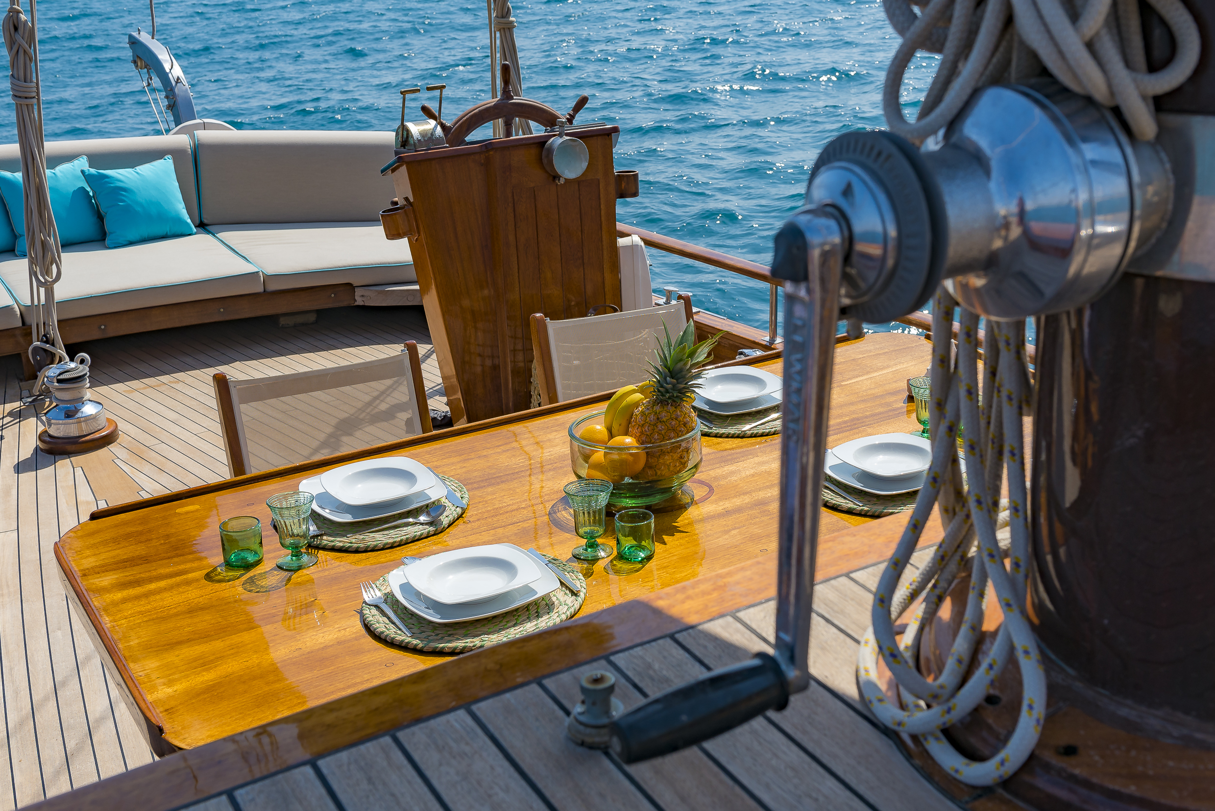 SY DIRDAM is a classic sailing yacht measuring 27.50m (90' 3") and built by Mehmet, with launch in 1994. Refitted in 2018, DIRDAM offers accommodation for up to 8 charter guests over a 4-cabin layout, while she is serviced by a professional crew of three.