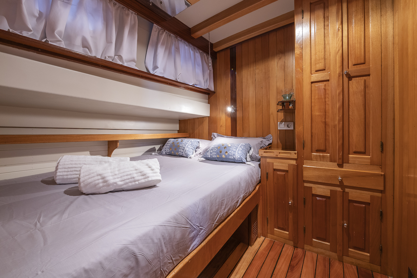 Refitted in 2018, DIRDAM offers accommodation for up to 8 charter guests over a 4-cabin layout, while she is serviced by a professional crew of three.