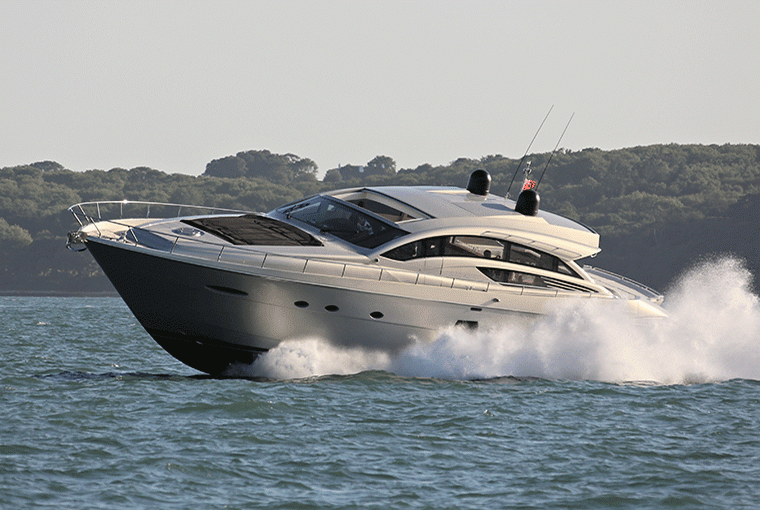 This sleep and sporty yacht, painted in pearl silver, takes her guests to unforgettable vacations in ultimate comfort.