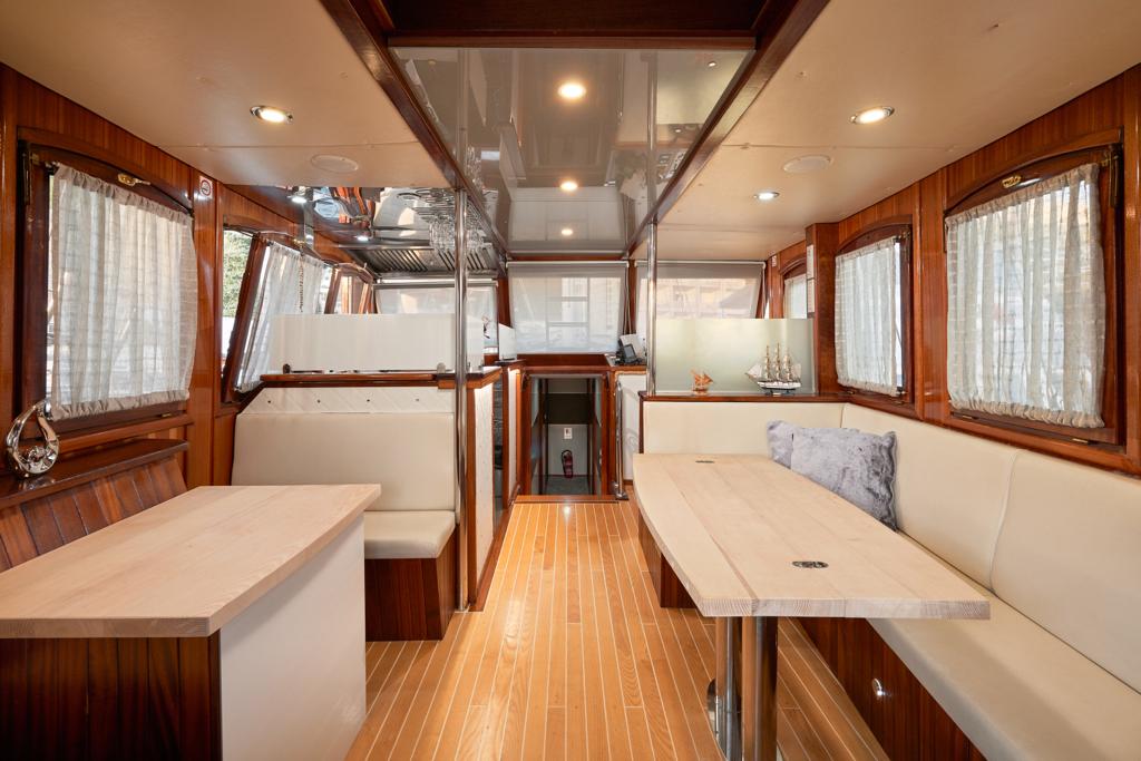 On deck, SLANO features alfresco dining under shade on the aft section, while on the foredeck there are plenty of sun pads. An upper deck offers further sun pads and a great area to watch the sunsets, with an evening cocktail.
