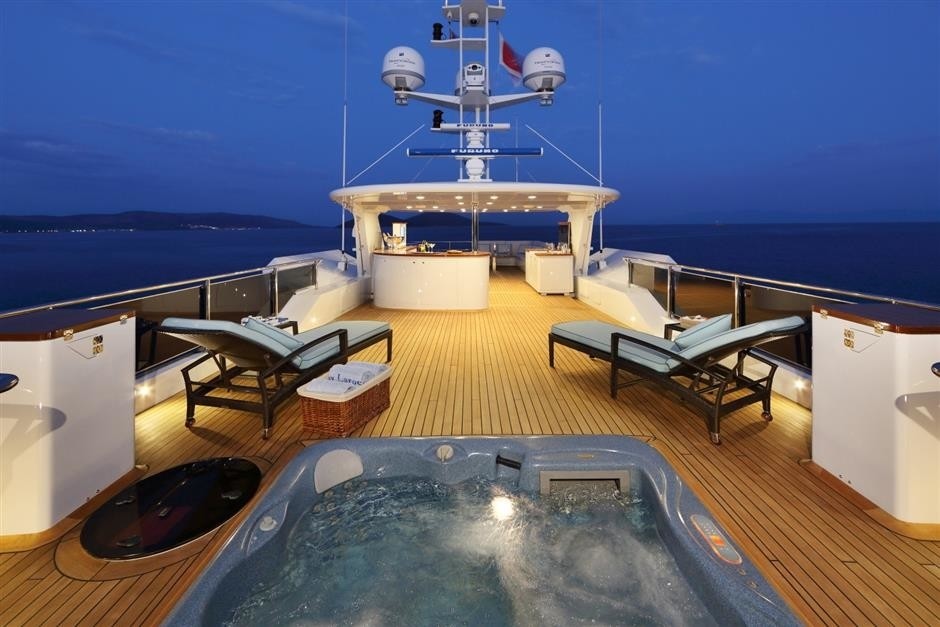Capable of hosting up to 80 guests for marina parties with a bar and Jacuzzi up on the sundeck, she is a superb choice for guests looking to celebrate in style or enjoy quality time together in a close-knit group.