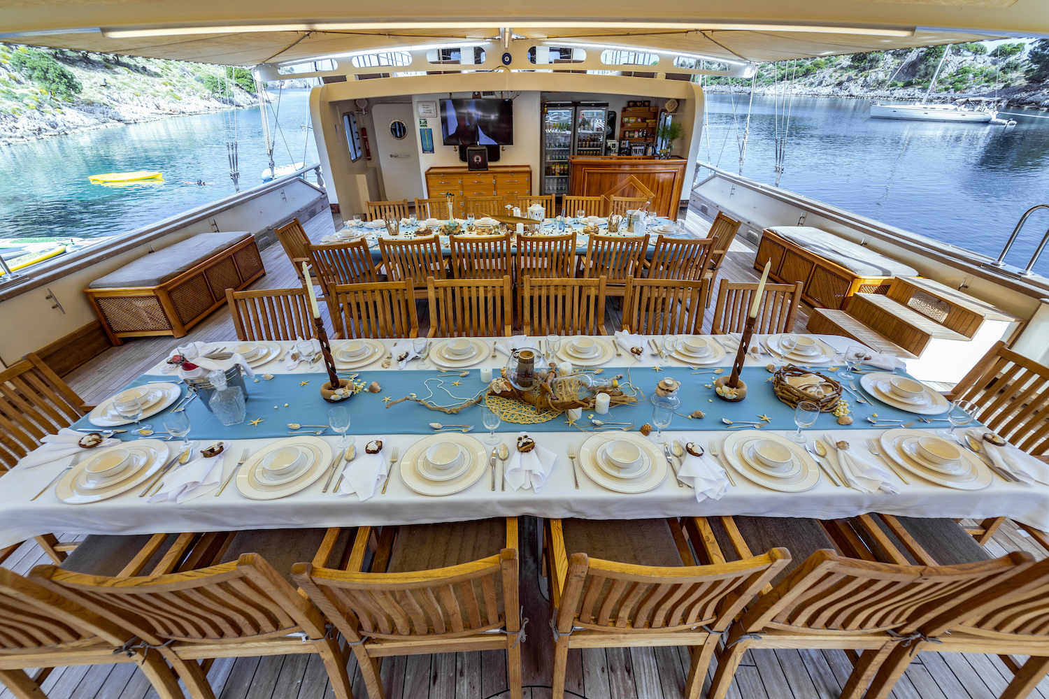 NOTABLE FEATURES for TERSANE 8: Vast living areas with accommodation for up to 28 guests ~ Traditional ambience ~ Open plan salon and dining ~ Plenty of outdoor areas to relax and entertain ~ Good cruising speeds of 10 - 12 knots ...