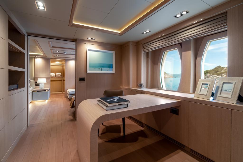 Her splendid interiors were designed by Giorgio Vafiadis, accommodating up to twelve charter guests in six cabins, while a crew of eleven ensures a pleasant stay on board.