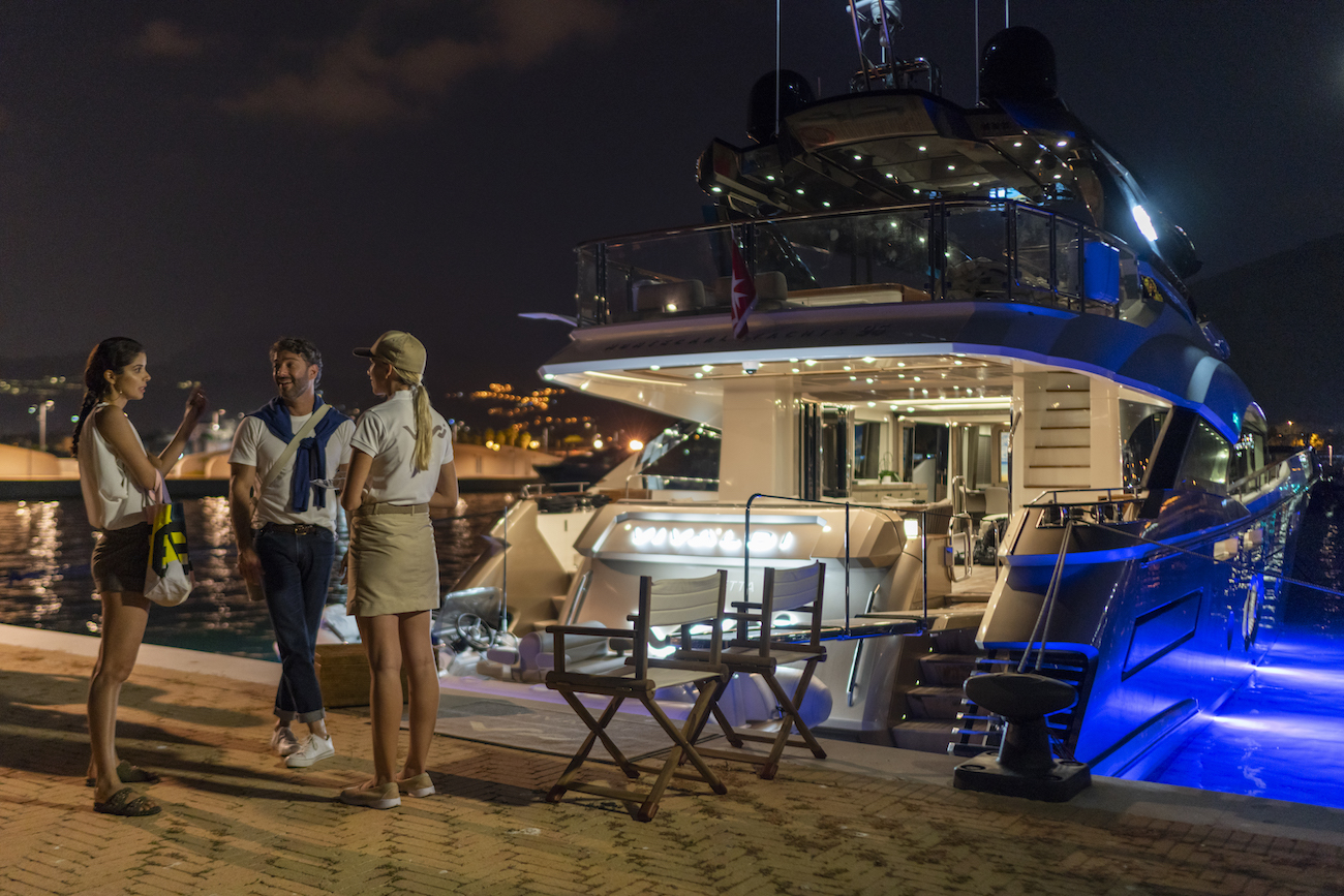 With modern interiors by Nuvolari Lenard, the yacht can accommodate up to twelve guests over a five-cabin layout with a crew of four on board.