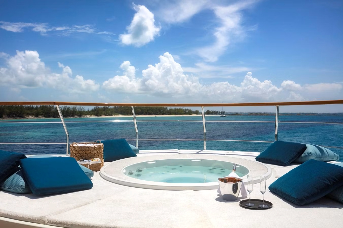 The sundeck aft is lined with sun loungers while amidships, beneath the hardtop there is ...
