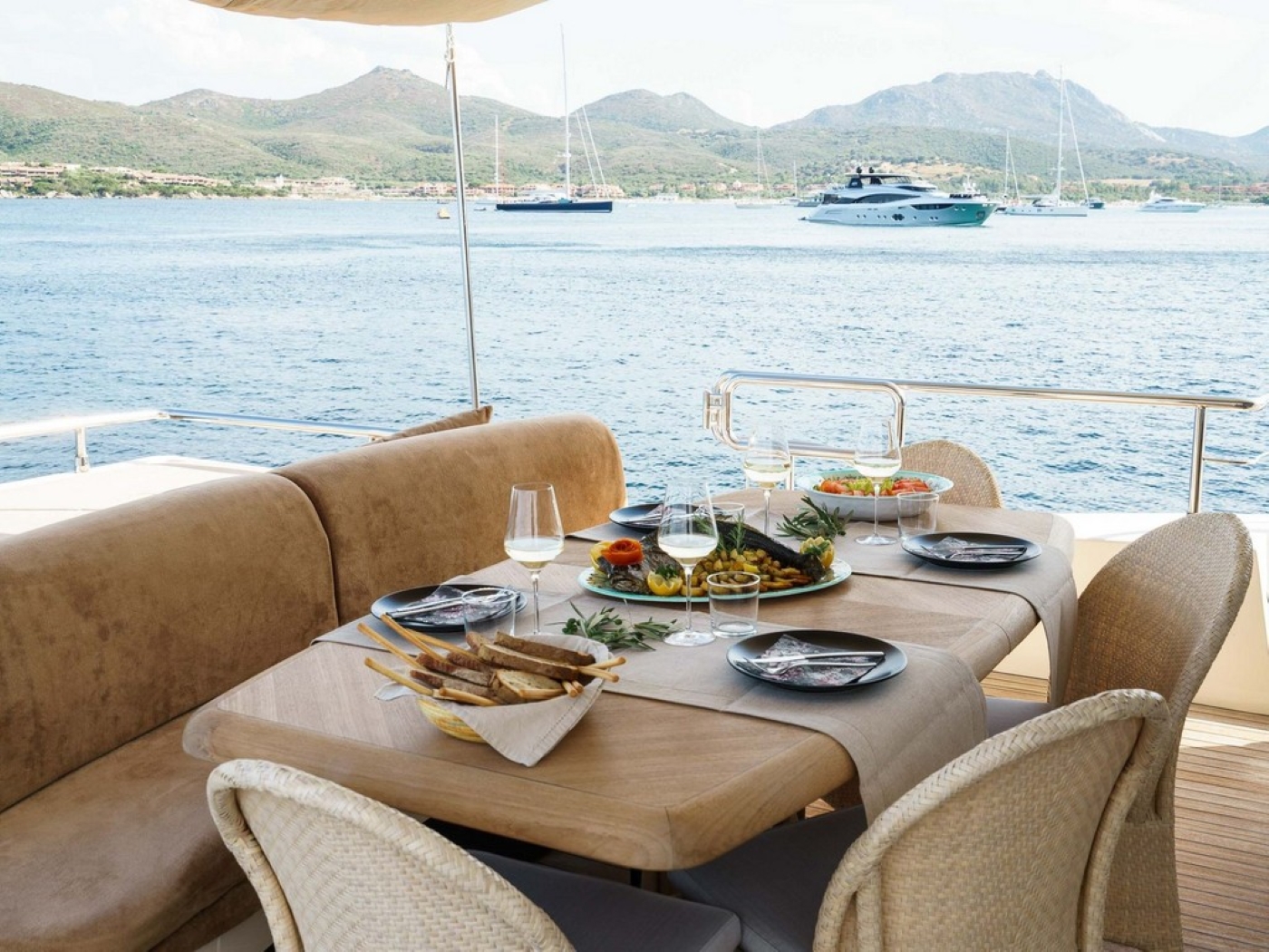 NOTABLE FEATURES OF ALLIE: ~ speed and comfort ~ open-style sports yacht ~ modern, clean interior design ~ Jet tender ~ air-conditioning ~ WiFi