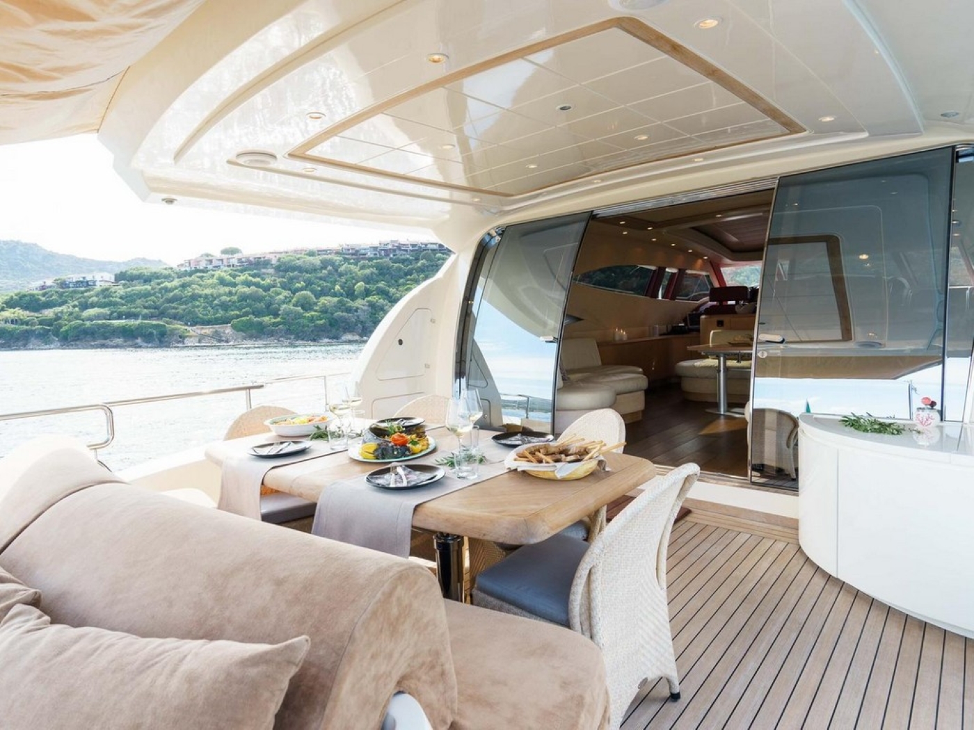 NOTABLE FEATURES OF ALLIE: ~ speed and comfort ~ open-style sports yacht ~ modern, clean interior design ~ Jet tender ~ air-conditioning ~ WiFi