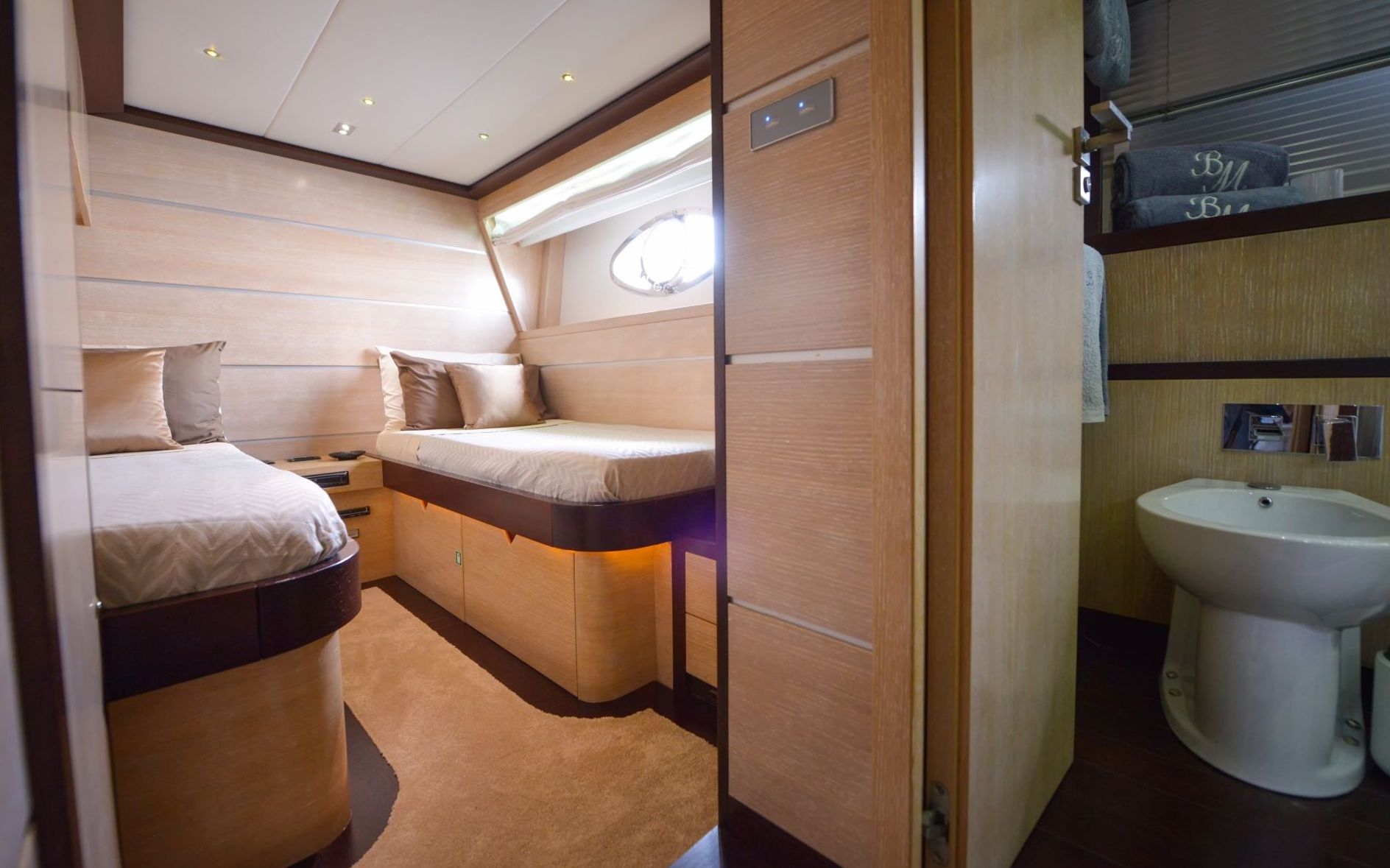 The yacht offers accommodation for up to 6 guests in 3 cabins.