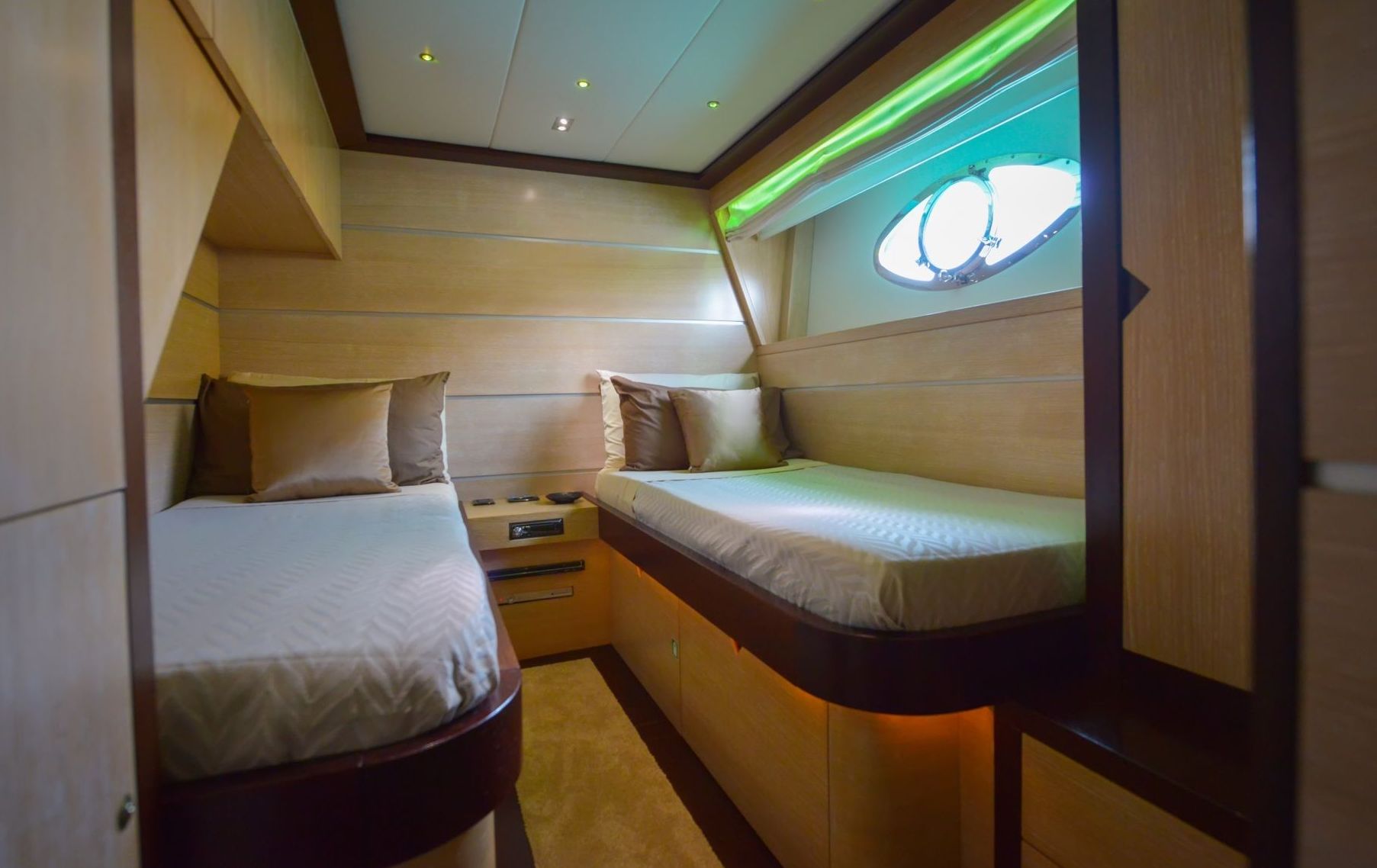 The yacht offers accommodation for up to 6 guests in 3 cabins.