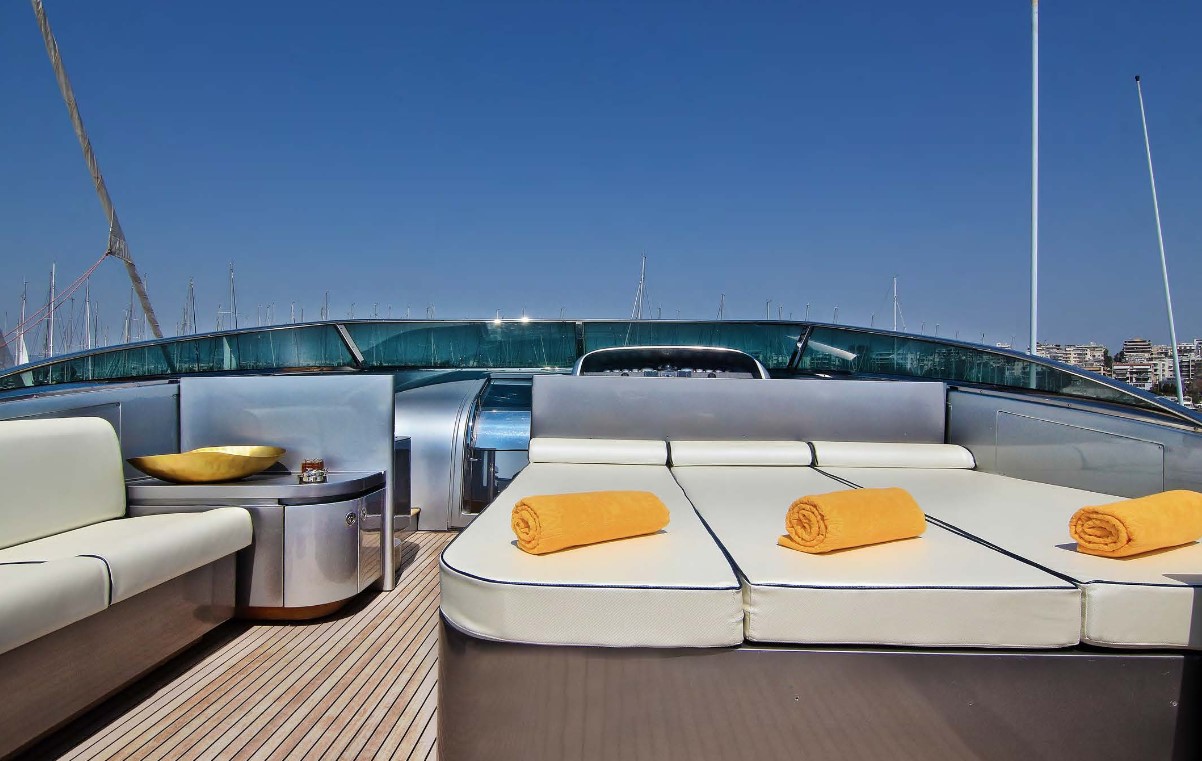 Walkways to port and starboard connect around to the foredeck, where there is a sofa on the bow for guests to enjoy the beautiful forward views.