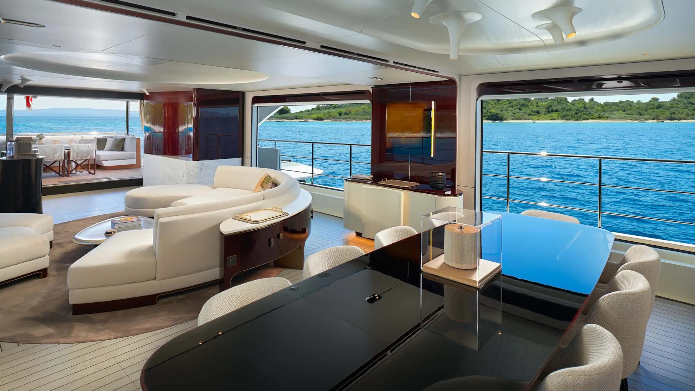 ~ Forward on the main deck: vast seating area with table, sunbeds and jacuzzi (4 persons).