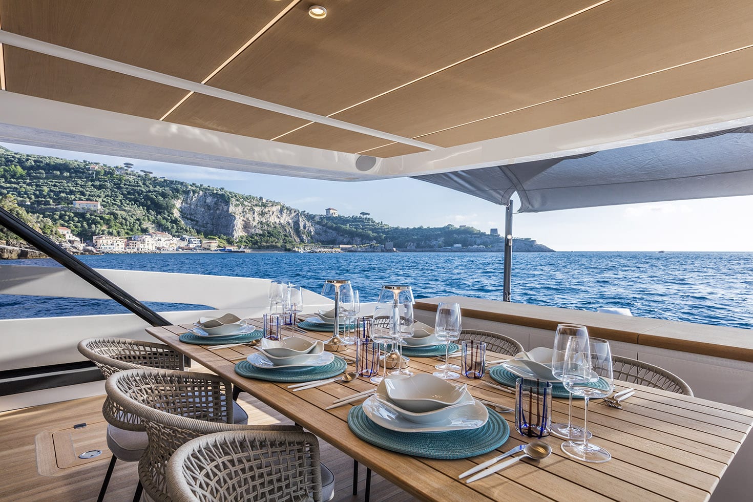 Motor yacht MOANNA I is an outstanding modern vessel, measuring 22.50m (73' 10") and offering great exterior deck areas and inviting interiors. She was built by the Palumbo shipyard in 2018 and provides overnight stay for up to 6 charter guests in three cabins.