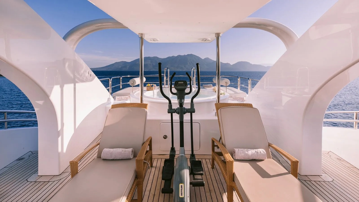 In the main salon, an ample lounge with plush seating and coffee table is ideal for socializing, while forward, the open plan formal dining allows guests to dine is style. The upper sky lounge boasts comfortable sofas, coffee table and full entertainment systems.