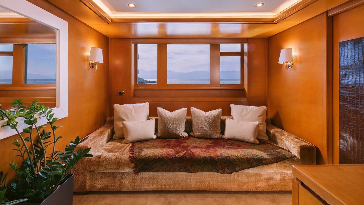The master suite is on the main deck forward and full beam of the yacht. On the lower deck is 1 VIP cabin, 2 double cabins and 2 twin cabins. All 4 cabins are finished in a contemporary elegant décor and boast plenty of space to relax and unwind.
