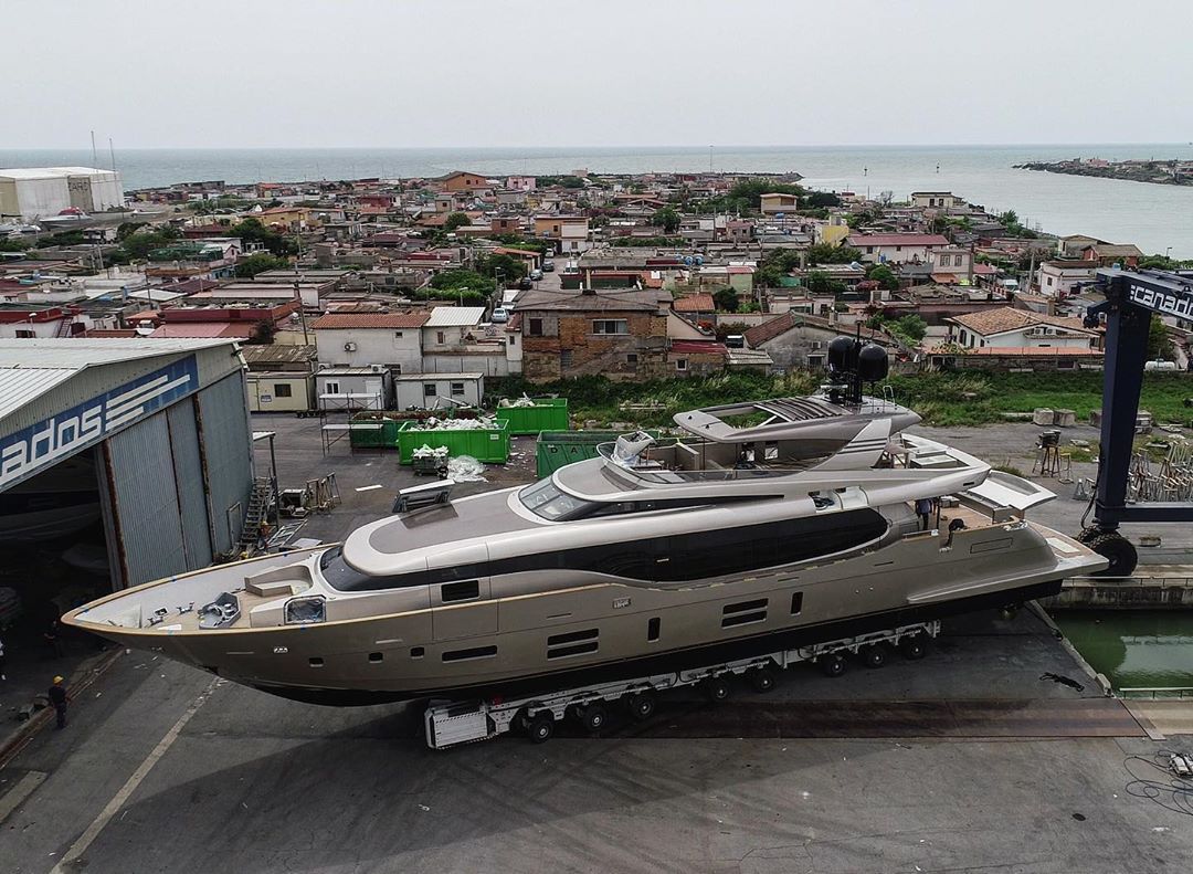 Two MTU 16V 2000 M96L 2,600hp engines provide a maximum speed of 27 knots and a cruising speed of 23 knots. Accommodation layout consists of five cabins, including one master suite on the main deck and four guest cabins on the lower deck.