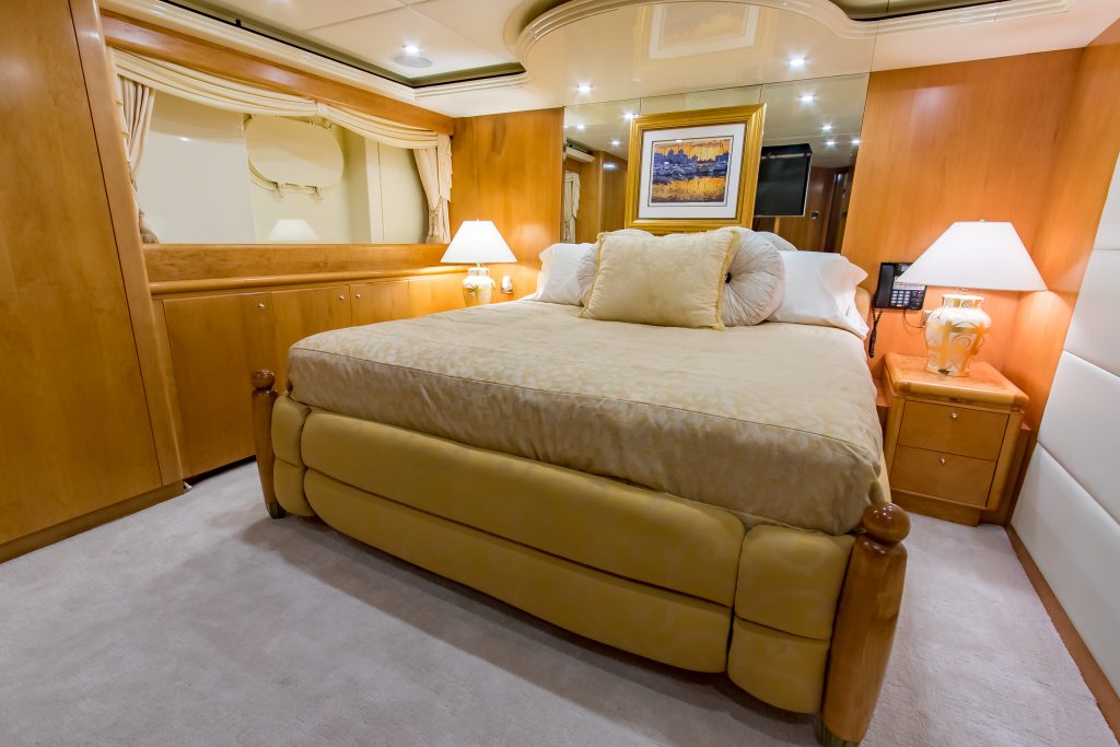The upper deck is the site of the Master suite complete with its own private lounge, and forward is the helm station.