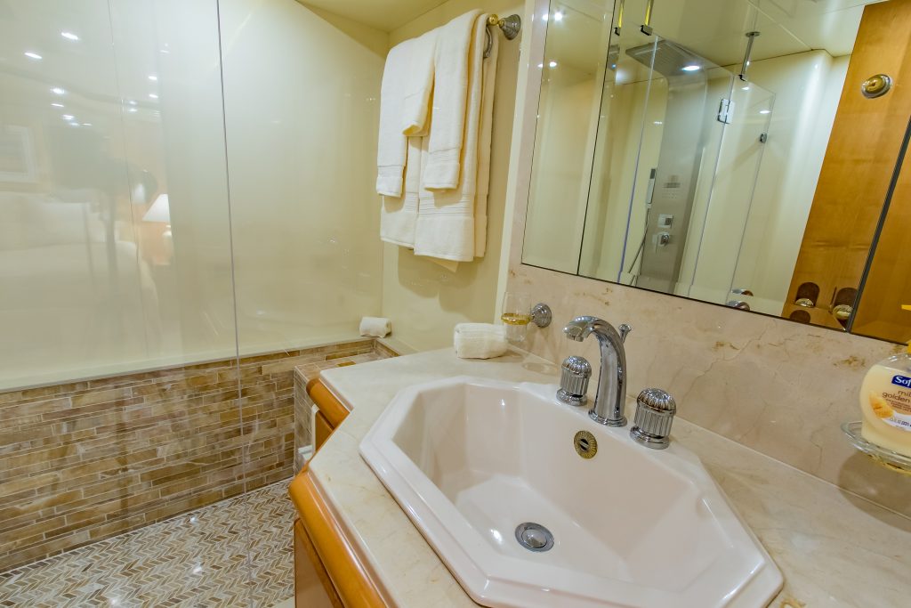 The upper deck is the site of the Master suite complete with its own private lounge, and forward is the helm station.