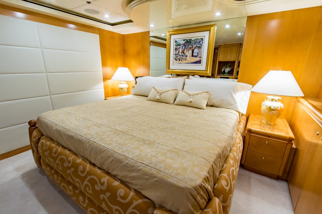 The upper deck is the site of the Master suite complete with its own private lounge, and forward is the helm station.