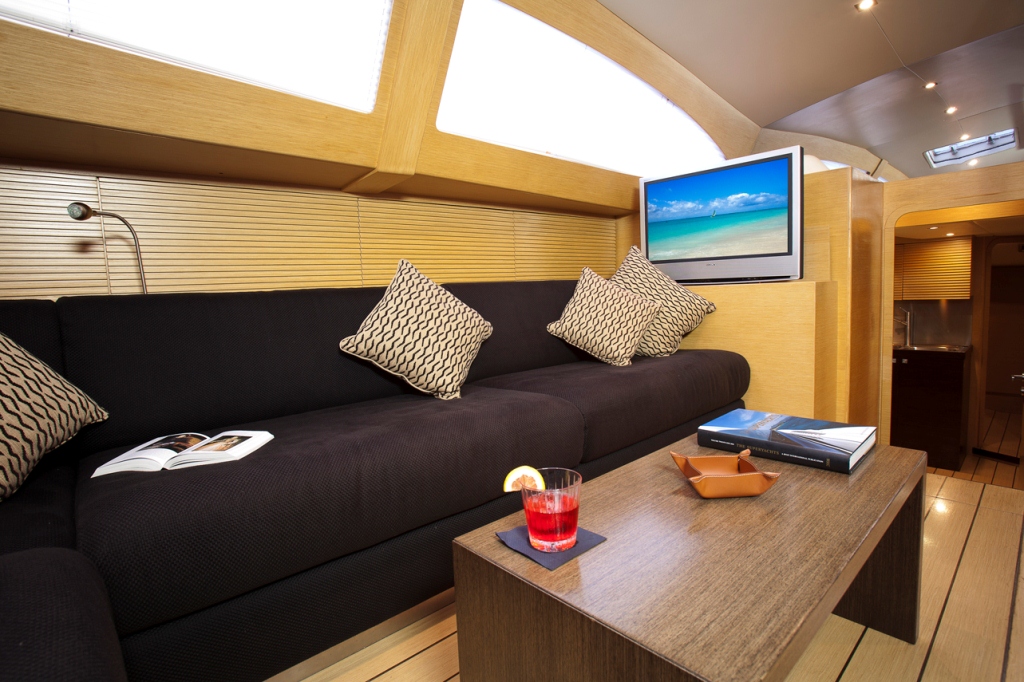 WIZARD boasts high sailing performance as a result of the cooperation of some of the best suppliers and designers available. She features a ‘clean’ uncluttered teak deck with interesting solutions for the tender garage aft deck hood, stern swimming platform. Her cockpit is well equipped for “Al Fresco” meals.
