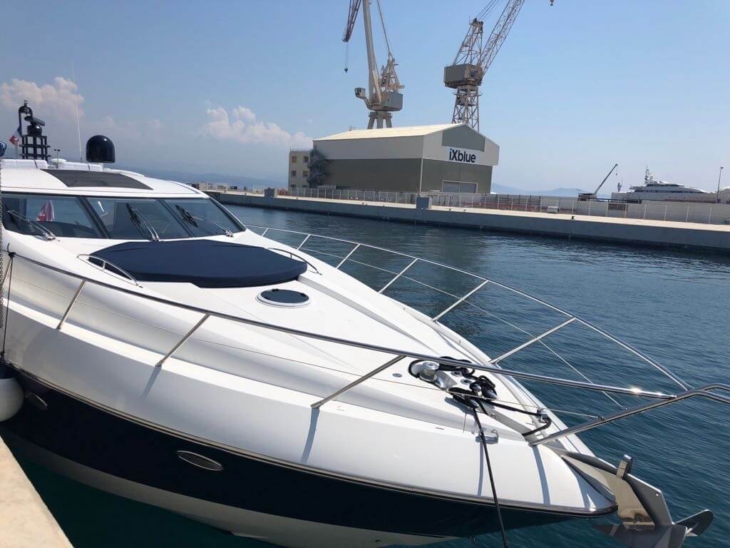 The foredeck is fitted with a broad sunbed where guests enjoy commanding views of the surroundings.