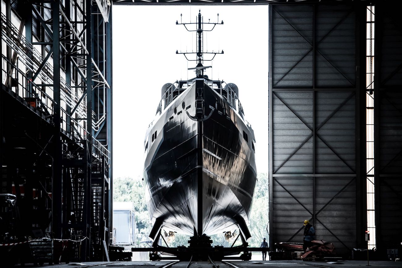 The 46m/151ft support yacht BAD COMPANY SUPPORT (PINK SHADOW, JOY RIDER, YS 4508) from Damen was launched in 2019. Constructed with a steel hull and aluminium superstructure, her naval architecture is also the work of the shipyard.