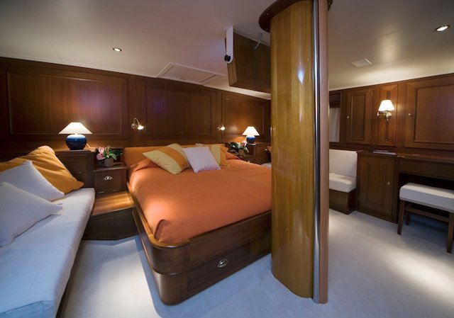 Tiziana can accommodate ten guests on board. She has 5 cabins - four of which are double, and one is a twin (1 King, 3 Queen, 2 single). All cabins have ensuite bathrooms, and flat screen TVs and BOSE systems.