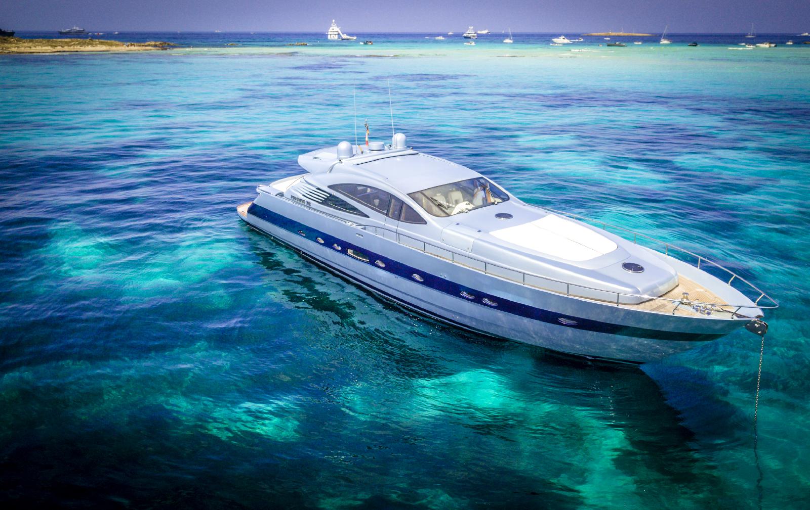 Open style sports yacht VANQUISH was built by the Italian shipyard Pershing in 2003 and measures 23.20m (76' 1”). The yacht offers accommodation for up to 8 guests over a 4-cabin layout, while a crew of three offers quality service on board.