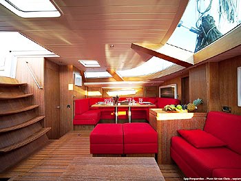 This sailing yacht boasts all the modern amenties including 2 TV screen plasma (saloon and master 's cabin), Stereo - CD and MP3 players, Film, music and book library and games.