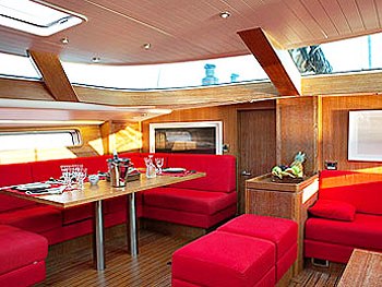 Out side the yacht has a great dinning table in the cockpit perfect for warm evenings.