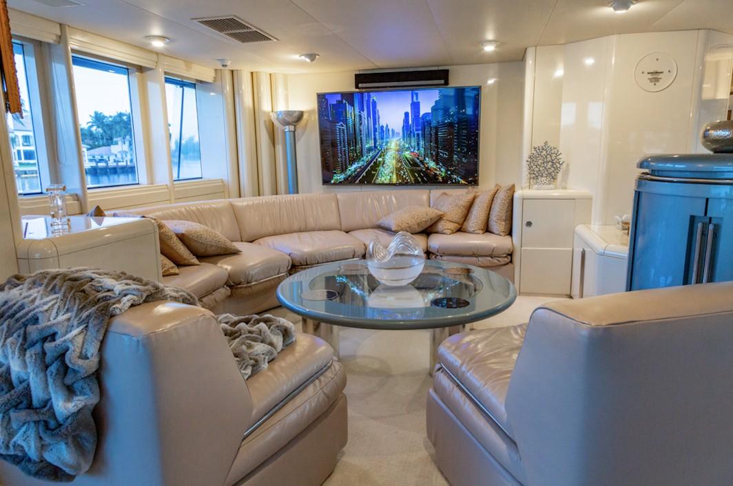 A sofa is placed behind the forward pilot seat for guests to watch the action as they group cruises from one destination to the next.