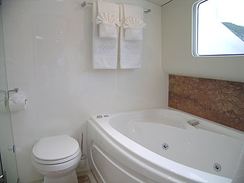 Akasha can comfortably accommodate ten guests in 5 cabins. The owner's cabin has a King size bed with a lounge and Spa Pool. The other four guest staterooms are Queen size with one that can convert into a twin - they also have their own private ensuites.