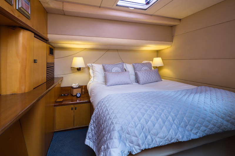 The price is an All Inclusive price which includes four crew, all meals and snacks, standard beverages and use of all watersport toys on board. Akasha can comfortably accommodate ten guests in 5 cabins.