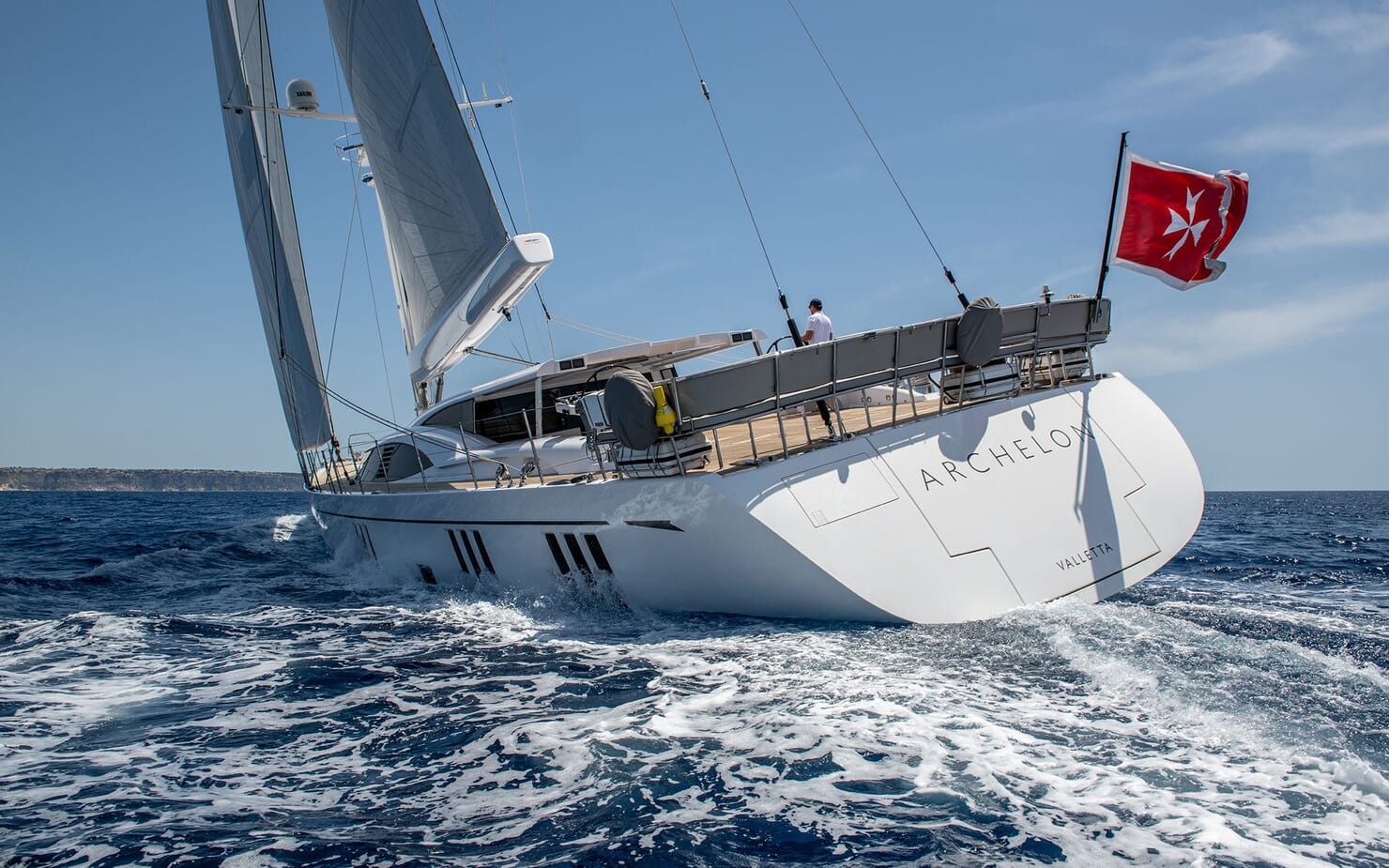 Sailing yacht ARCHELON is an outstanding 37.45m (122' 10") performance sloop, built by the UK shipyard Oyster Yachts and launched in 2019. The yacht is able to accommodate up to 12 guests in 5 cabins and has a crew of 6 on board.