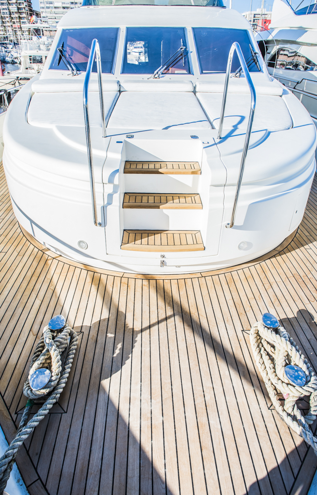 From here, side decks lead to a good-sized foredeck with fitted raised sun pads. An upper deck has a further alfresco dining option and numerous sunning areas.