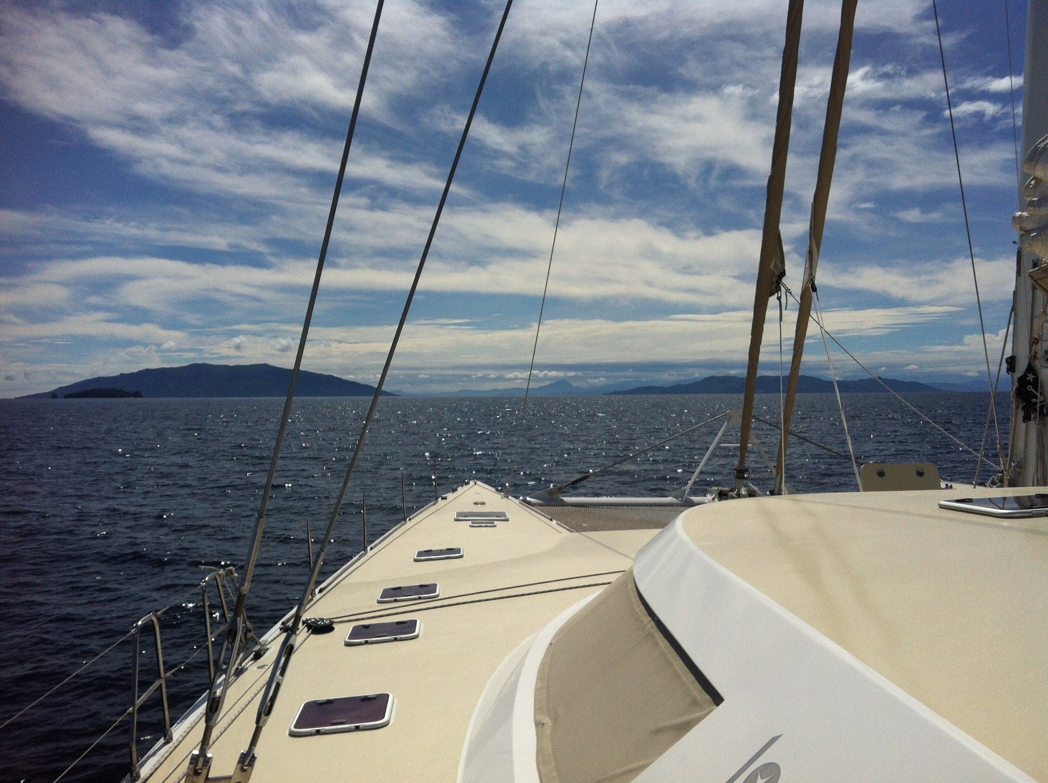 Outside, guests can enjoy over 2500 square feet of uncluttered deck space. Aft is a large cockpit with an alfresco dining and seating area. The decks are scattered with over-stuffed sun cushions so guests can relax under the ...