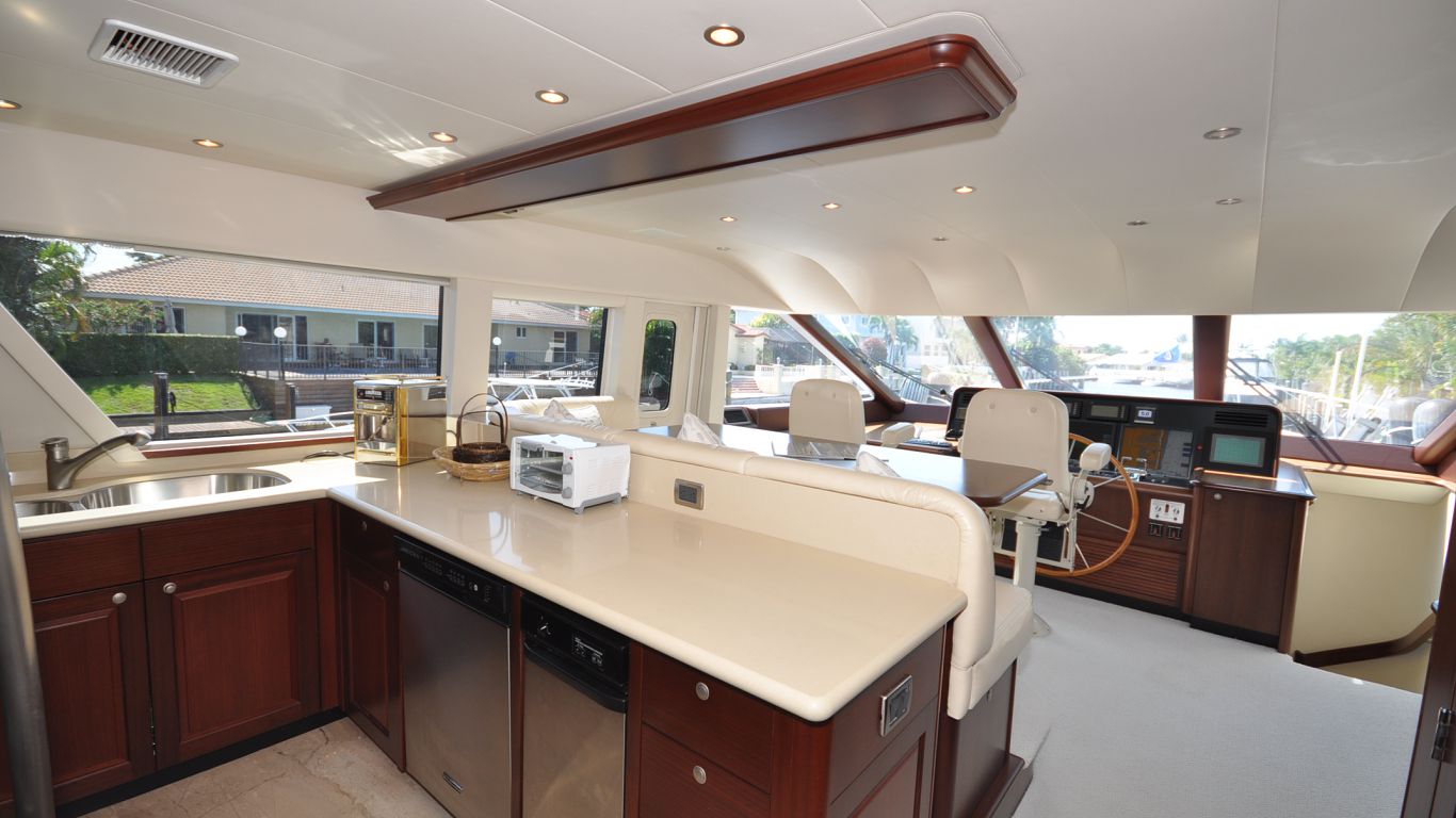 A tender is stored along the stern, which can be launched using a Davit crane to provide even more room in the sunshine for guests to use.