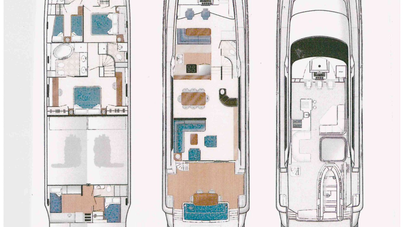 The yacht features comfortable and inviting accommodation for up to 6 guests over a three-cabin layout. There is a crew of 3 on board.
