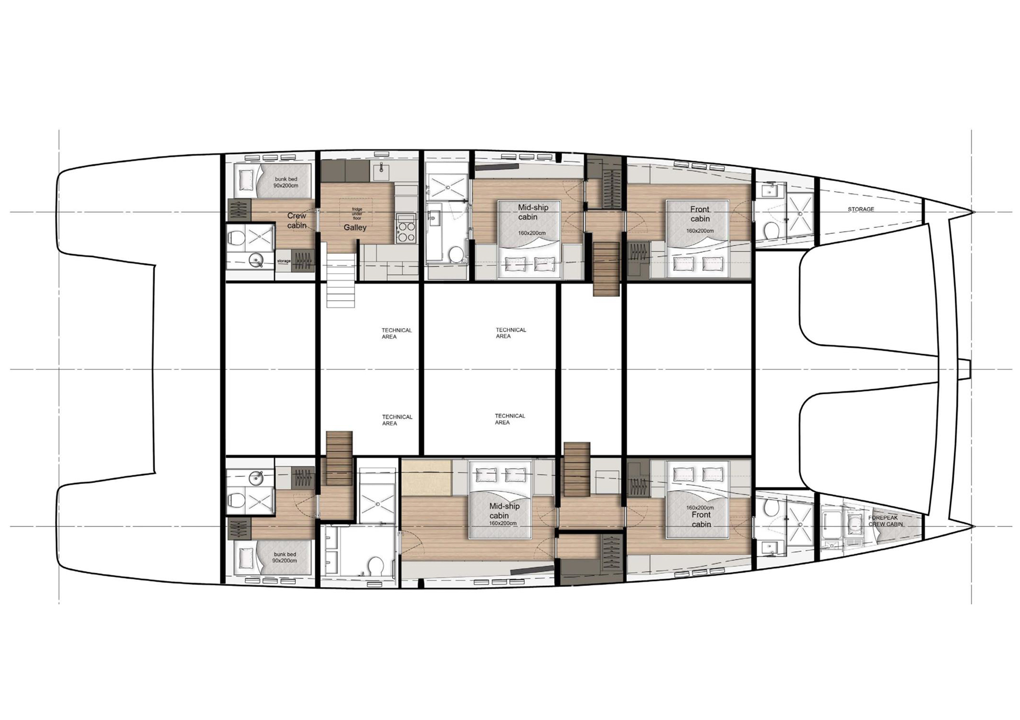 The luxury catamaran yacht ABOVE & BEYOND (ex ABOVE) is a 23.87m (78' 4") luxury sailing yacht built by Sunreef Yachts. The yacht features modern interiors by the shipyard’s in-house team, accommodating up to 8 charter guests in 4 cabins, with ensuite bathroom facilities. There is a crew of 5 onboard.